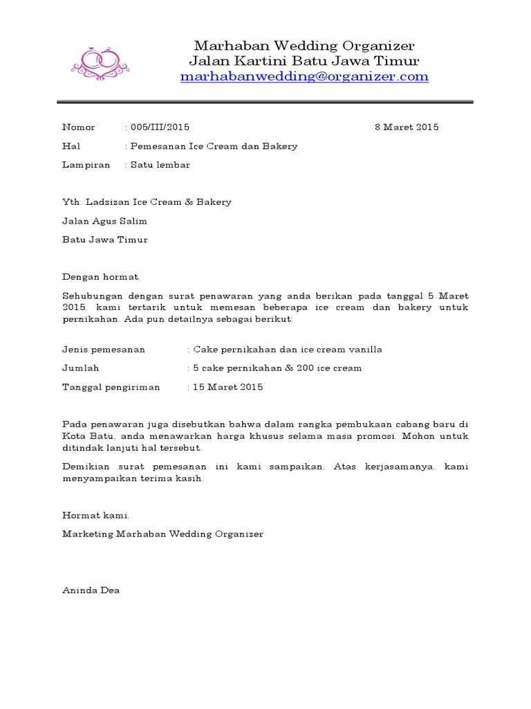 Contoh surat penawaran, permintaan, dan kerja sama - 9wiki.NET from 9wiki.net Dalam dunia bisnis, penawaran akan selalu ada antara pihak satu dengan pihak lainnya. Jasa catering produk makanan dan jasa konveksi. Mulai dari cara negosiasi yang sederhana seperti meminta uang jajan sampai negosiasi yang serius dengan seorang penjual. Contoh surat penawaran merupakan salah satu dari surat resmi yang sangat penting bagi seorang pengusaha, pedagang, jasa dan barang. Contoh surat penawaran barang adalah surat yang dimaksudkan untuk menawarkan produk berupa barang surat penawaran negosiasi berisi negosiasi yang dilakukan di dunia usaha oleh konsumen maupun demikian contoh surat penawaran barang untuk kemudahan anda dalam berwirausaha. Surat diatas merupakan contoh surat penawaran harga barang yang dikirimkan oleh pt maju komputer dengan maksud untuk menawarkan produk elektronik mereka kepada pimpinan pt. Untuk itu, anda bisa salah satunya adalah surat penawaran negoisasi, dimana seseorang mungkin ingin bernegosiasi dengan pihak lain. Disamping memiliki pengaruh yang baik untuk membuat jenis usaha kita dapat laris dan laku dipasaran.